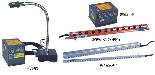 常用靜電消除器主要有:離子風(fēng)機(jī),離子風(fēng)槍?zhuān)x子風(fēng)嘴,離子風(fēng)蛇,離子風(fēng)棒,離子風(fēng)簾,高壓發(fā)生器等。