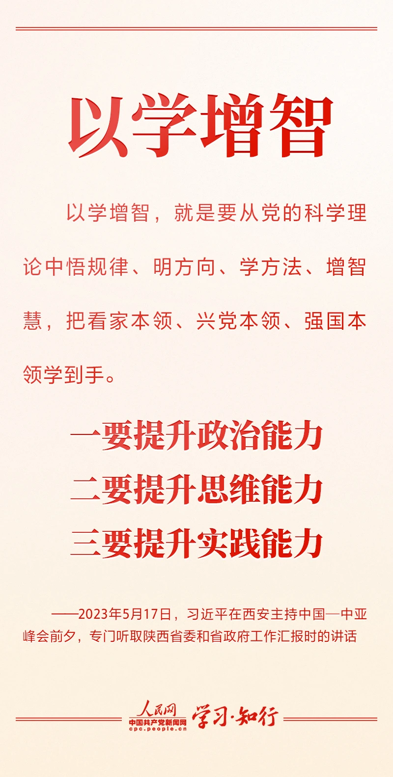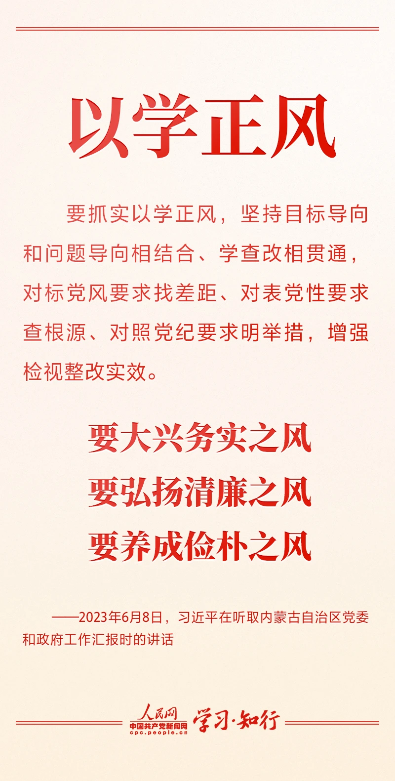今年以來,習(xí)近平總書記先后在廣東、陜西、內(nèi)蒙古、江蘇等地考察調(diào)研,分別對主題教育根本任務(wù)中“以學(xué)鑄魂、以學(xué)增智、以學(xué)正風(fēng)、以學(xué)促干”四個方面作出深刻闡釋,四堂生動的黨課不斷推動主題教育深入開展、取得實實在在的成效。