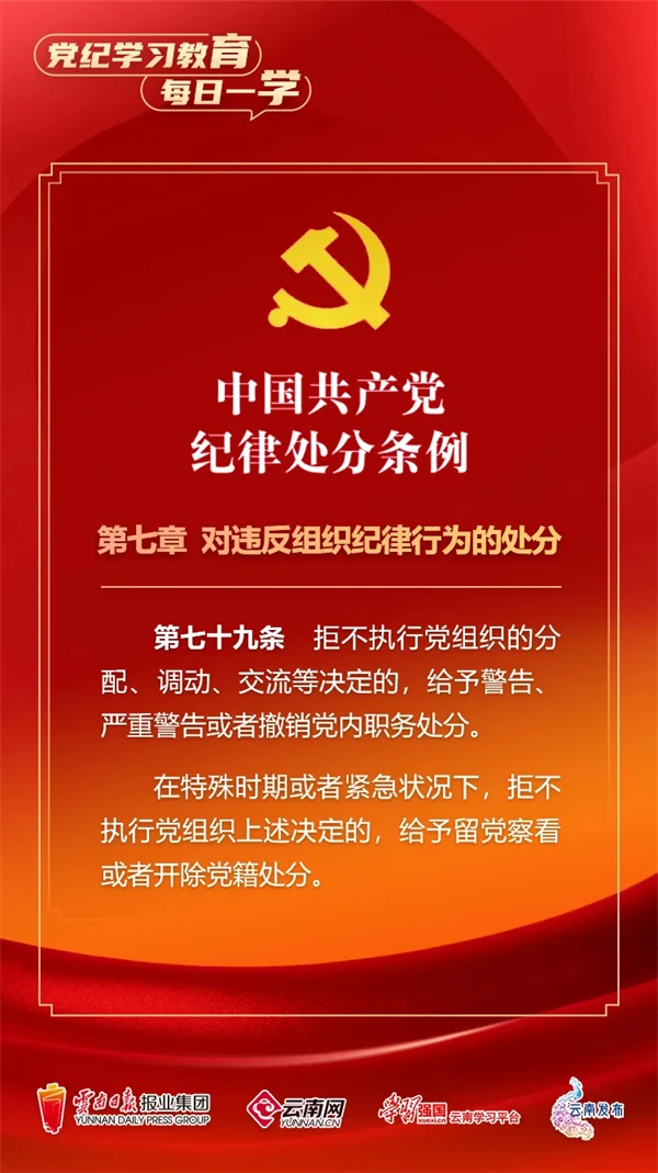 為深入學(xué)習(xí)貫徹落實(shí)習(xí)近平總書記關(guān)于黨紀(jì)學(xué)習(xí)教育的重要講話和重要指示精神,便于全省各級黨組織和廣大黨員、干部深入學(xué)習(xí)貫徹修訂后的《中國共產(chǎn)黨紀(jì)律處分條例》,云南網(wǎng)聯(lián)合“學(xué)習(xí)強(qiáng)國”云南學(xué)習(xí)平臺、云南發(fā)布共同策劃推出“黨紀(jì)學(xué)習(xí)教育•每日一學(xué)”專欄,營造全員參與、人人學(xué)紀(jì)的濃厚氛圍。今天,我們推出第?期,一起來學(xué)習(xí)。