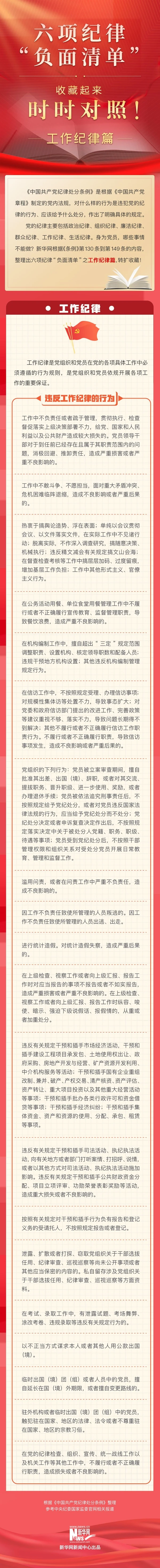 當(dāng)前,全黨正在開展黨紀(jì)學(xué)習(xí)教育。這次黨紀(jì)學(xué)習(xí)教育明確要聚焦解決一些黨員、干部對黨規(guī)黨紀(jì)不上心、不了解、不掌握等問題,組織黨員特別是黨員領(lǐng)導(dǎo)干部認(rèn)真學(xué)習(xí)《中國共產(chǎn)黨紀(jì)律處分條例》,做到學(xué)紀(jì)、知紀(jì)、明紀(jì)、守紀(jì),搞清楚黨的紀(jì)律規(guī)矩是什么,弄明白能干什么、不能干什么,把遵規(guī)守紀(jì)刻印在心,內(nèi)化為言行準(zhǔn)則,進(jìn)一步強(qiáng)化紀(jì)律意識、加強(qiáng)自我約束、提高免疫能力,增強(qiáng)政治定力、紀(jì)律定力、道德定力、抵腐定力,始終做到忠誠干凈擔(dān)當(dāng)。今天推出“負(fù)面清單”之工作紀(jì)律篇,一起收藏學(xué)習(xí)。
