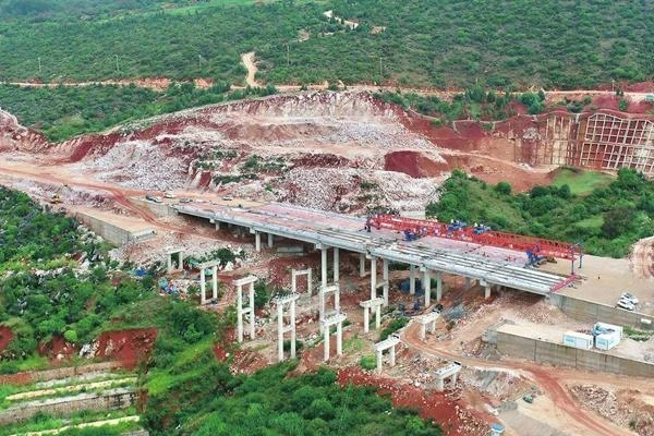 據(jù)介紹,永寧二號(hào)大橋位于紅河州瀘西縣永寧鄉(xiāng)城子新村東側(cè)約2.5公里處,是項(xiàng)目控制性工程之一,由中國一冶承建。該橋全長(zhǎng)156.08米,共架設(shè)預(yù)制T梁60片,主要承擔(dān)著跨越南北向深切溝谷及銜接B匝道樞紐的關(guān)鍵功能。面對(duì)施工場(chǎng)地狹窄、運(yùn)輸條件復(fù)雜等困難,項(xiàng)目團(tuán)隊(duì)科學(xué)組織,創(chuàng)新采用雙龍門吊、運(yùn)梁炮車組合工藝提升效率。同時(shí),應(yīng)用智能張拉系統(tǒng)實(shí)現(xiàn)預(yù)應(yīng)力施工全過程精準(zhǔn)監(jiān)控,并建立質(zhì)量追溯系統(tǒng),為每片T梁賦予專屬“身份證”,實(shí)施全過程監(jiān)督指導(dǎo),確保梁片架設(shè)的安全與質(zhì)量雙達(dá)標(biāo)。目前,永寧二號(hào)大橋已完成總工程量的75%。項(xiàng)目負(fù)責(zé)人介紹,下一步施工重點(diǎn)將轉(zhuǎn)向橋面濕接縫澆筑、防撞護(hù)欄施工、橋面鋪裝及機(jī)電交安工程等,預(yù)計(jì)9月底前完成全部橋面施工任務(wù)。