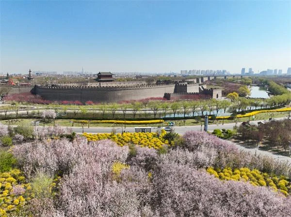 河北省正定古城南城門春色(2025年3月31日攝,無人機照片)。新華社發(fā)(梁子棟 攝)