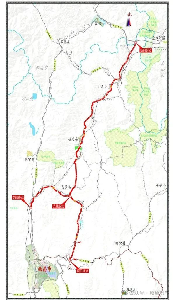 金口河至西昌高速公路路線方案圖
